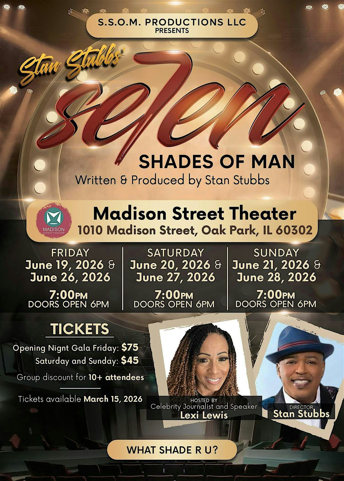 Get Ready for a Seven Shades Black Tie Opening Night Black Tie Gala! Experience Seven Shades, an awesome in-person theatrical event where vibes are high and good times are guaranteed. After the show, stay and meet the cast and soak up an unforgettable atmosphere. Whether you're looking to chill or dive into the fun, Seven Shades has got you covered. Don’t miss out—this is where the magic happens!