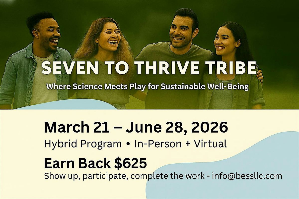 Seven to Thrive Tribe is a hybrid, research‑driven wellness experience designed for millennial professionals who want to reduce stress, improve well‑being, and build sustainable habits — while having fun and connecting with a supportive community.