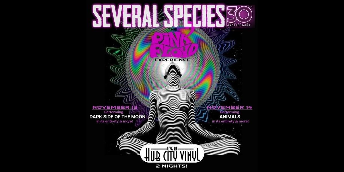 Several Species is a world class tribute to one of the greatest bands of progressive live music: Pink Floyd. Brought to you in stunning audio clarity and a mind blowing visual presentaion, Several Species has become known as THE best-in-class recreation of the Pink Floyd Experience. Consisting of a tour level lineup and some of the region's top tier talent, SS is poised to be an experience you do NOT want to miss!! And now, they'll be back at Live at Hub City Vinyl for TWO nights of Pink Floyd.