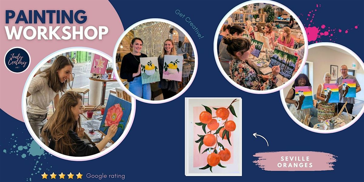 Step into the Mediterranean and unleash your inner artist! This delightful painting workshop whisks you away to sun-soaked Seville, where you'll paint glowing oranges in bold, brilliant hues. Discover the magic of shading to craft the illusion of depth, making the design leap off the canvas. You're in control—pick your perfect colour backdrop and watch your illustration shine against a chic square frame. An evening of colour, creativity, and pure joy awaits!
