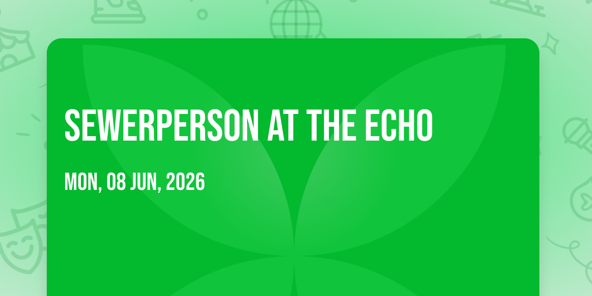 🌟 Be part of history at Sewerperson at The Echo, an extraordinary gathering that will captivate your imagination! 🏛️ The prestigious The Echo in Los Angeles, CA sets the stage for an unforgettable experience on June 8th, 2026 at 07:00 PM. ✨ They are bringing together the finest elements of entertainment and innovation to create moments that will take your breath away. From the moment you arrive, you'll be immersed in an atmosphere of wonder and excitement. 🎯 This carefully planned event ensures every guest experiences something truly special. 🎊 Early booking is recommended for this must-attend event of the season!
