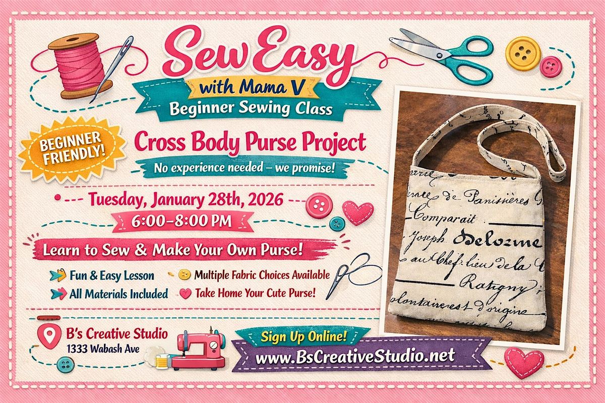 have you always wanted to learn how to sew? join Brenda aka MOMMA V as she teaches you some basic sewing techniques while you make this adorable Crossbody purse.