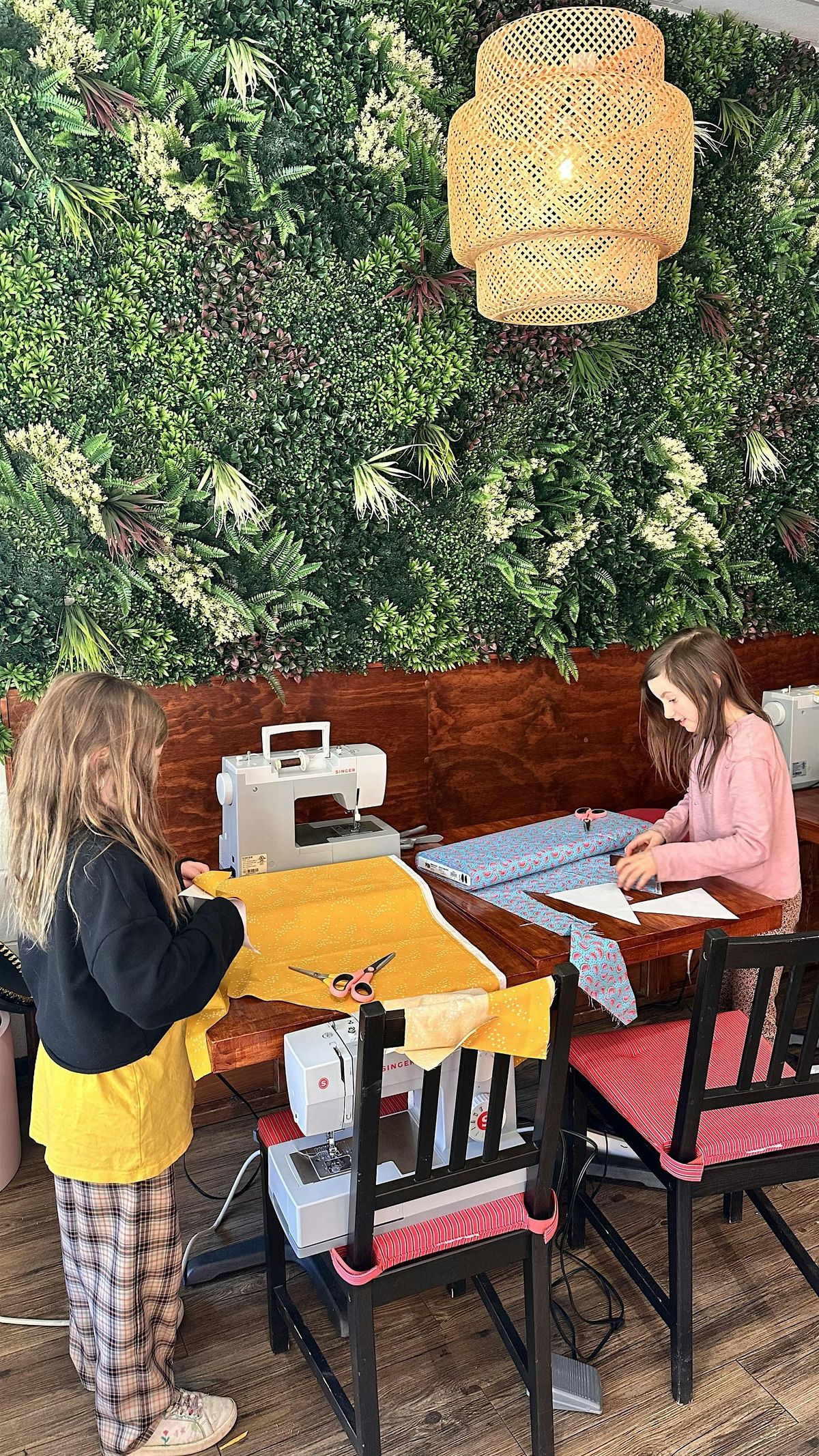 Kids sewing class focus on teaching the children how to use the sewing machine. We strongly recommend using your own, but we also offer machines in case you don't have one. Starting with threading and basic set up and continuing with simple projects. Children have full acces to all the equiptment and beatifull materials.