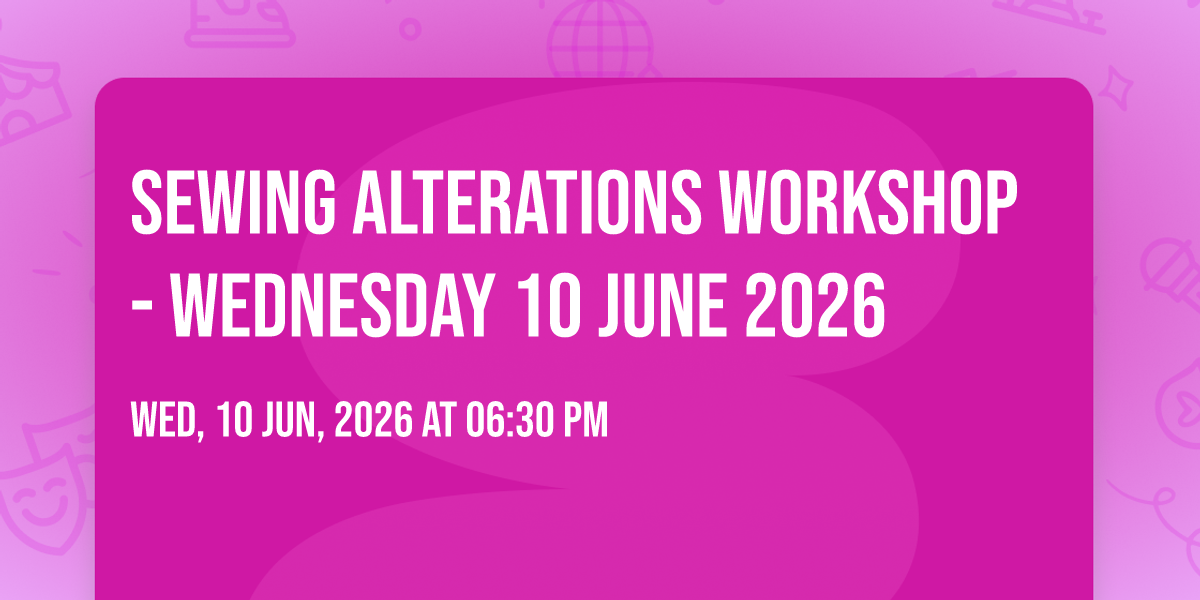 Welcome to Sewing Alterations Workshop event! Join us at Harborne Academy on Wednesday 10 June 2026 at 6:30 PM TO 9.30 PM for an exciting evening of learning and creativity.
