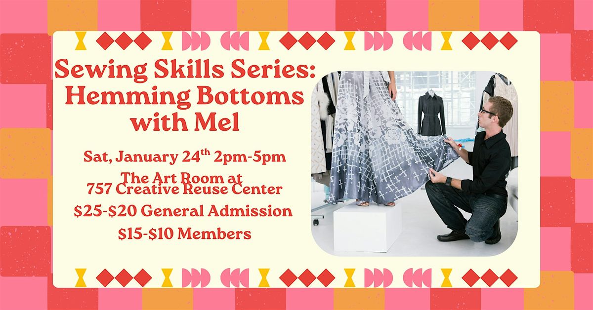In this class, Mel will teach you the process of pinning and hemming your garment bottoms to fit better! You can bring a garment of your own to work on such as pants, a skirt, or dress.
