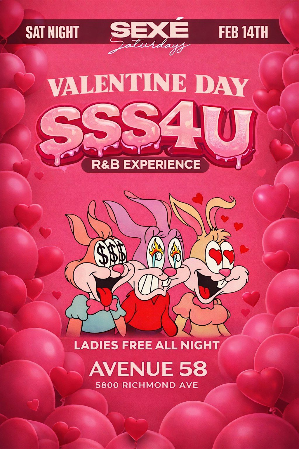 Sexé Saturdays VDAY EDITION, Is a special r&b/ trap soul event, for the lovers, singles, sneaky links