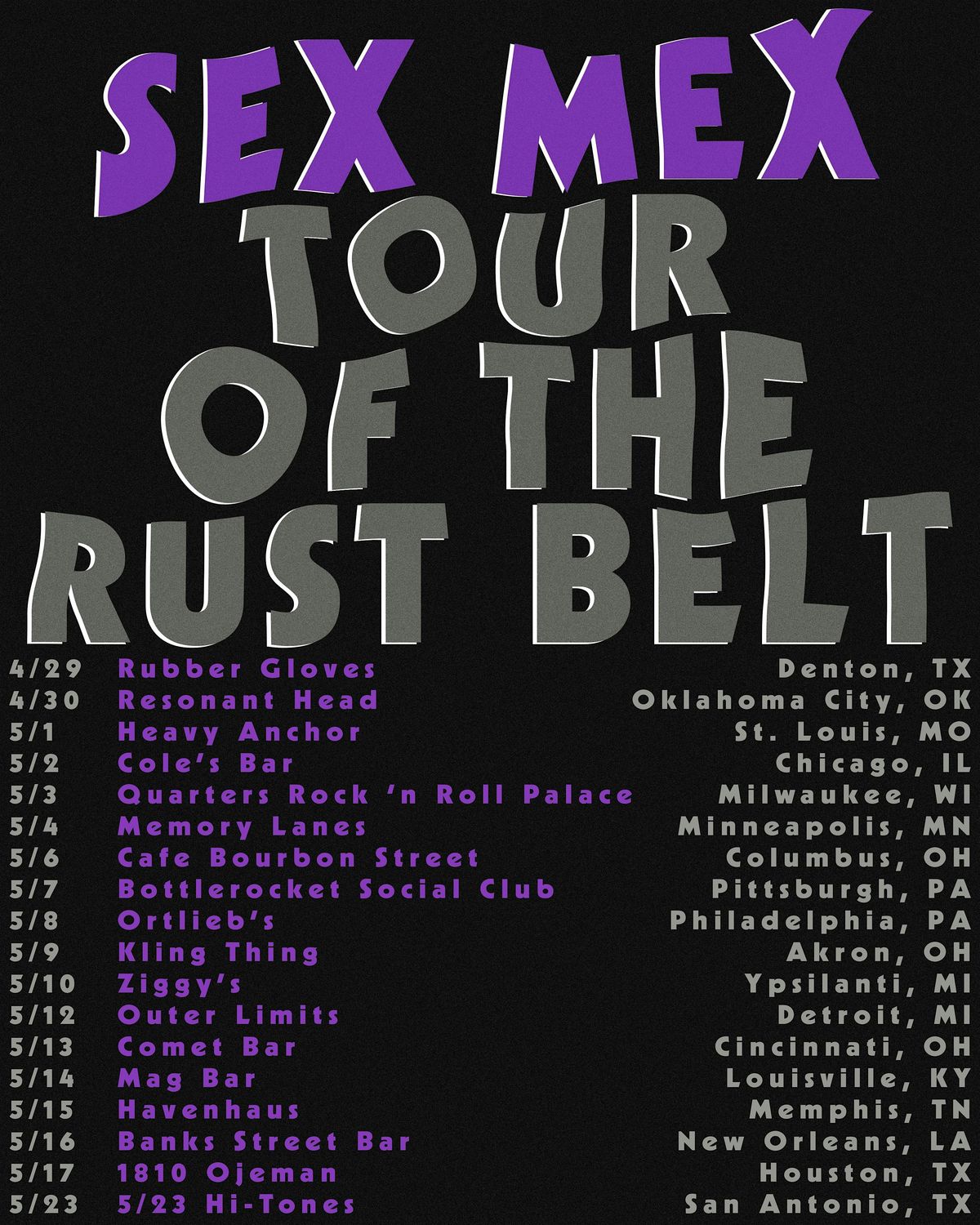 EARLY SHOW (6pm-10pm) Sex Mex, Cheater Slicks, ShopThePig, DJ PrimitivePleasures @ Cafe Bobo 5/6