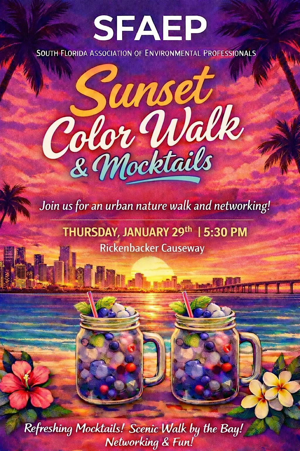 We’ll start the evening from parking at Alice Wainwright Park where we'll get refreshing mocktails (bring your own reusable cup!), then head out for a scenic walk along the bay. It’s casual, social, and designed for easy conversation, perfect for networking, catching up with colleagues, and making new connections while getting some fresh air.