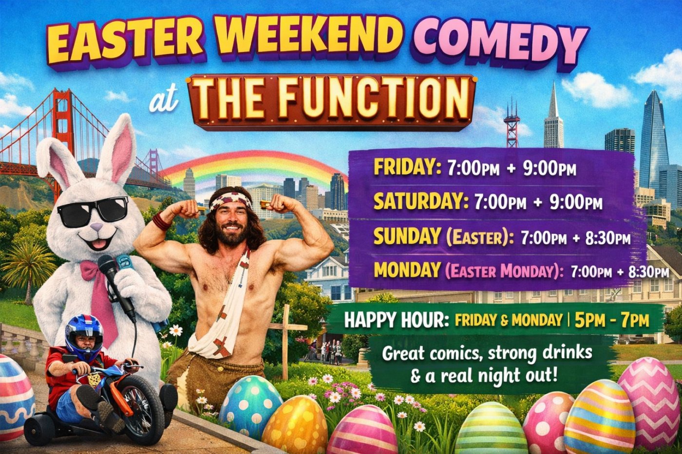 SF’s Easter Weekend Comedy Fest hits The Function. Killer lineups, cocktails, and real night out energy. April 3–6.