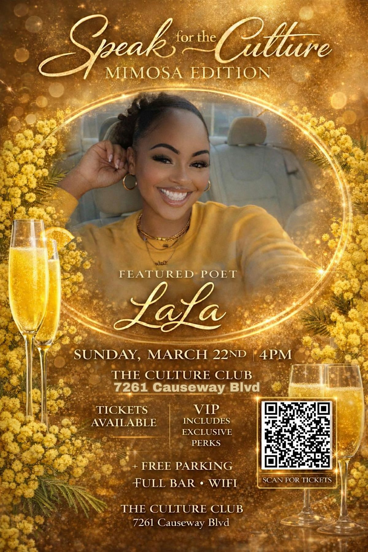 🌼 Powerful spoken word performances 🎤 Live poetry and soulful music 🥂 A celebratory mimosa experience 🌺 A welcoming creative community ✨ An unforgettable night of culture and expression