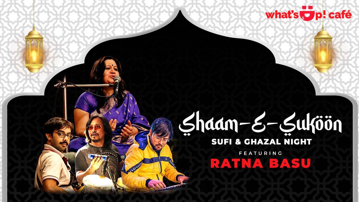 Immerse yourself in an evening of soulful melodies at Shaam-E-Sukoon, a Sufi & Ghazal night that promises music, emotion, and timeless poetry. Hosted at What's Up! Café, this special evening brings together the magic of live music and the warmth of an intimate café setting.Featuring the talented Ratna Basu, the night will be filled with mesmerizing renditions of classic Sufi and ghazal compositions that celebrate love, longing, and spiritual devotion. Let the soothing rhythms and poetic lyrics transport you into a world of serenity as you unwind with good food, great company, and soulful music.Perfect for lovers of live music and timeless ghazals, Shaam-E-Sukoon invites you to slow down, soak in the melodies, and experience an unforgettable musical evening. 🎶✨