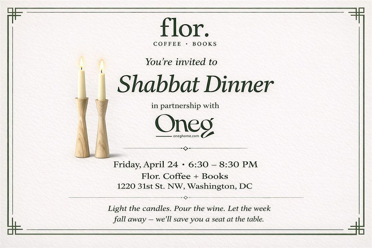 You’re invited to join us for a special Shabbat Dinner at Flor, created in partnership with Oneg.