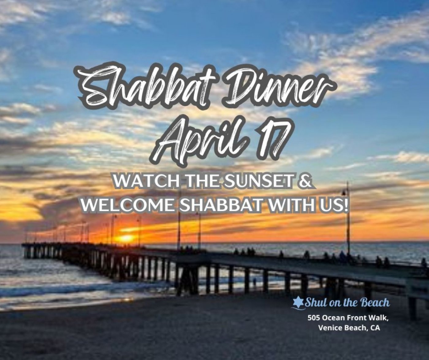 Watch the sunset over the ocean and indulge in the joyous atmosphere of a Shabbat Dinner with the Shul on the Beach Community. Join fellow Jewish professionals for an uplifting evening filled with delicious food and wine, inspiring conversations, singing, and meaningful Torah discussions.