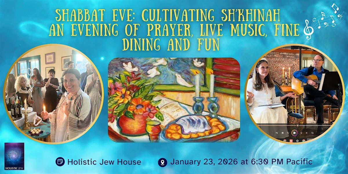 You are invited to gather for a beautiful Shabbat Eve at the Holistic Jew House on Friday, January 23, 2026, at 6:30 PM. This is an intimate evening to pause, exhale, and enter into Shabbat ease together.