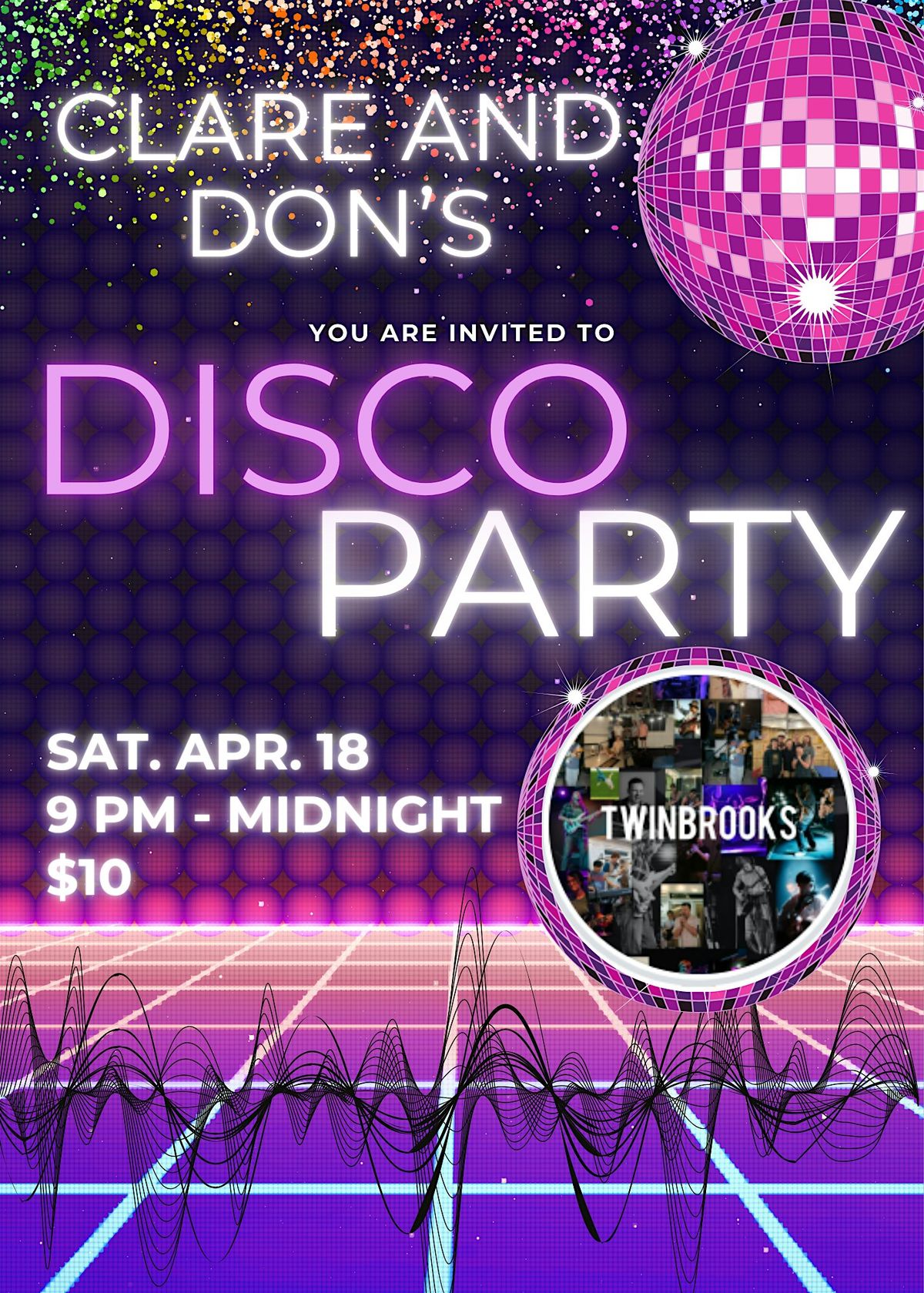 Join us at Clare & Don's Beach Shack on April 18, 2026 at 9:00 PM (Eastern Time) for a fun night filled with groovy beats and good vibes performed by Twinbrooks, DC’s premier variety cover-band🥁.