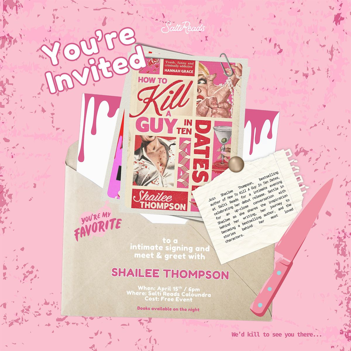 Join us for a fun and intimate evening with bestselling author Shailee Thompson, celebrating her hit novel How to K*ll a Guy in Ten Dates. Hosted by Salti Reads, this exclusive meet & greet offers readers the chance to connect up close with Shailee as she shares the inspiration behind her writing, her journey to becoming a bestselling author, and the stories behind her most beloved characters.