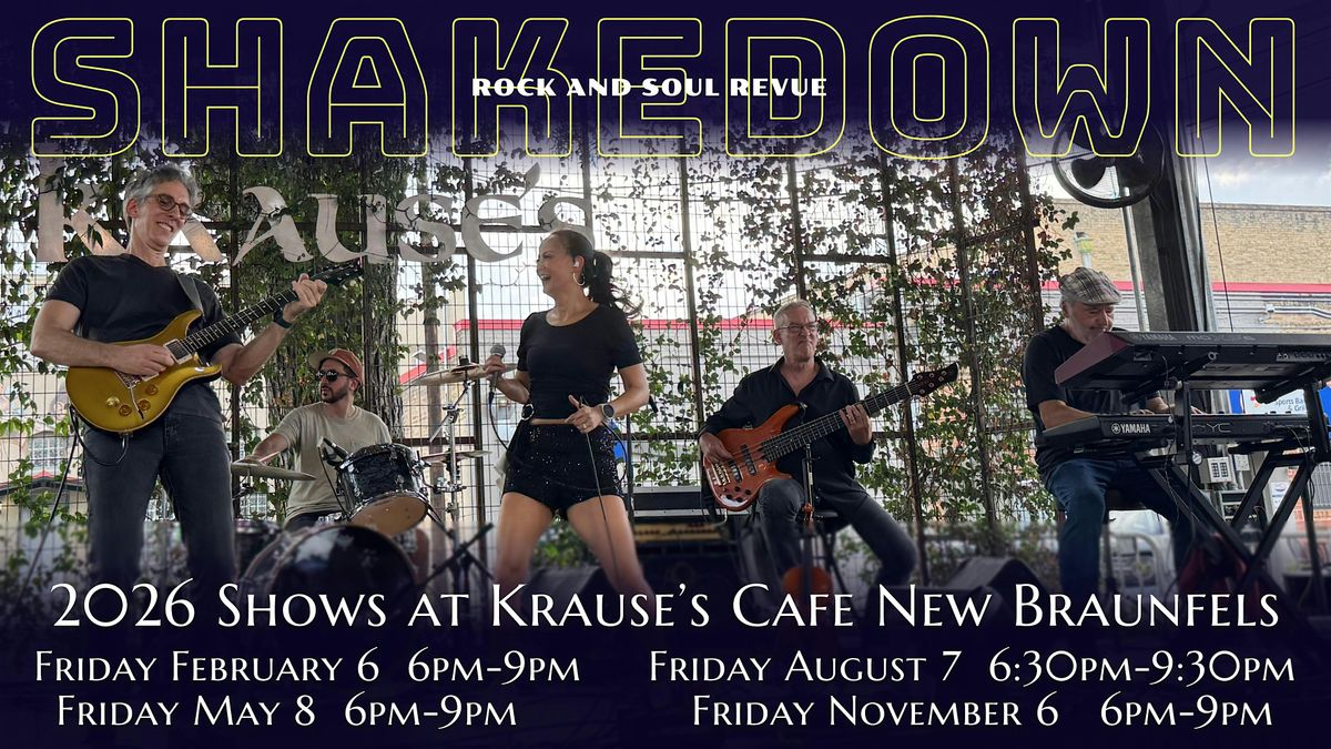 Join Shakedown for an unforgettable night at Krause’s Cafe in New Braunfels! Indulge in classic Enjoy classic German dishes with a Texas twist, sip on local craft brews, and groove to our signature blend of rock and soul that will have you dancing all night long!
