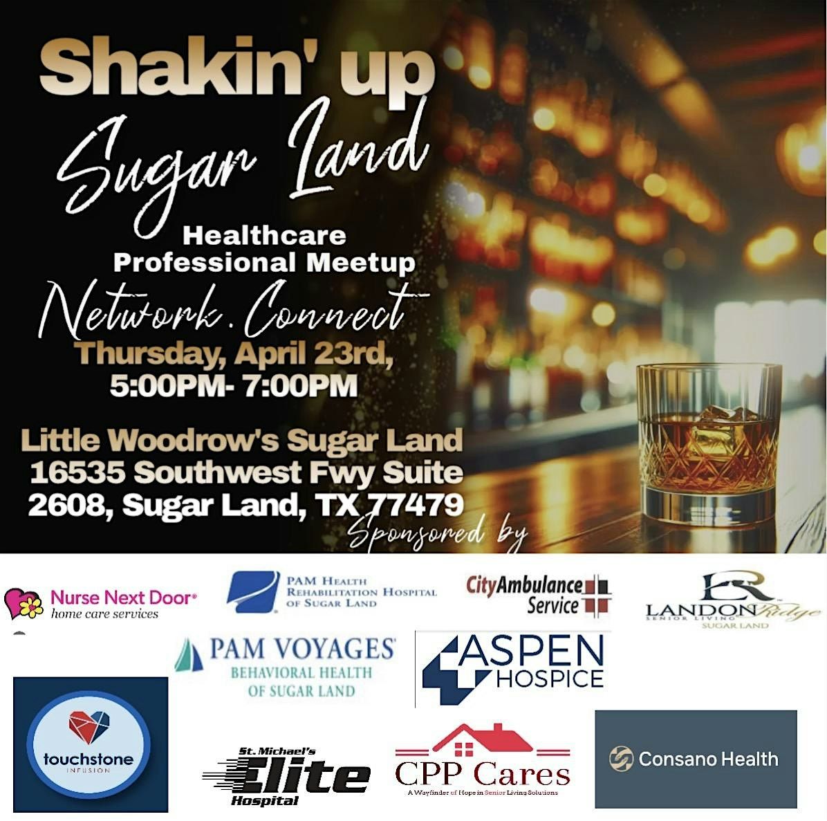 Get ready to Shake Up Sugar Land in the best way possible! This event is a fantastic opportunity to gain insight into your company, position and make new connections. It provides a platform for healthcare professionals to connect, share experiences, and explore potential collaborations. Let's work together to strengthen the local healthcare community and support professional growth.