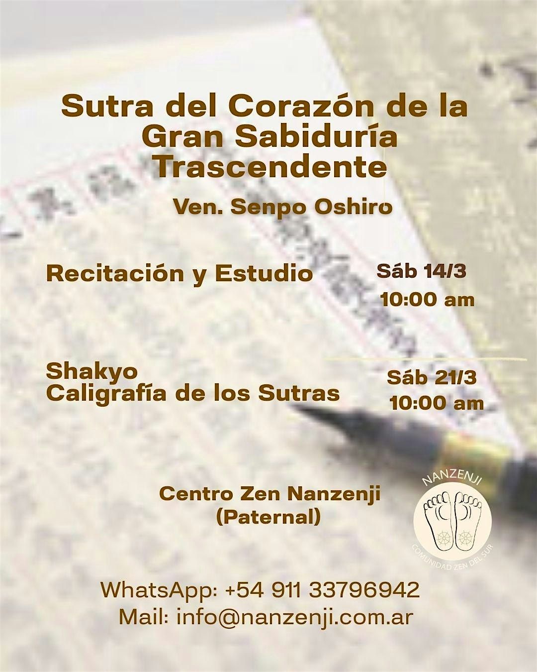 Shakyo Caligrafía budista de Sutras -Sábado 21 de MARZO-