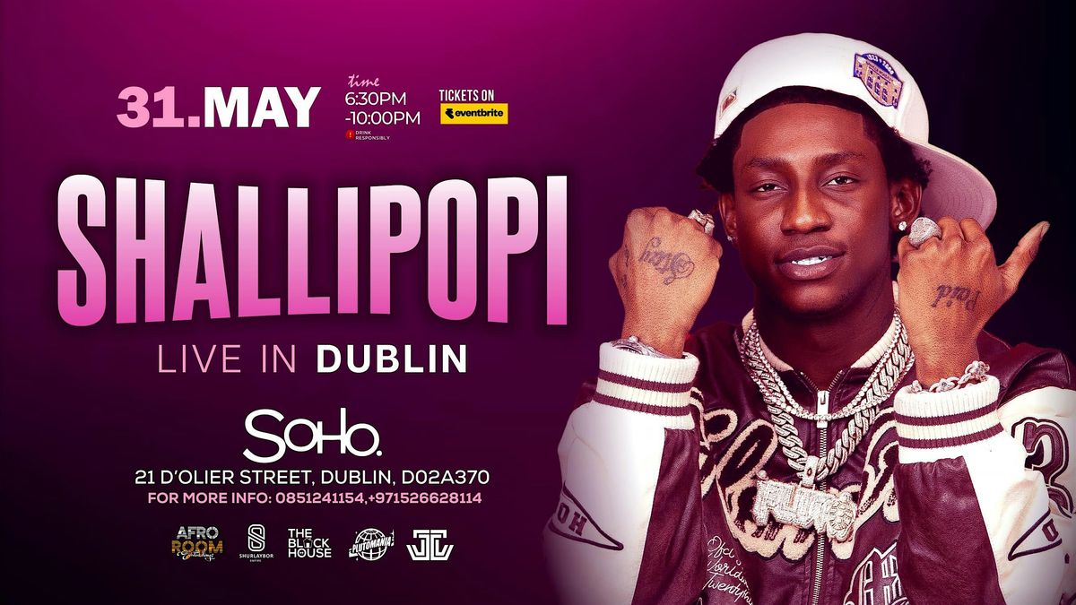 Get ready for an awesome night with Shallipopi performing live at Soho Dublin! Join us on May 31, 2026 at 6:30 PM (IST) for good vibes, great music, and a fun crowd. Don’t miss out on this epic in-person event right in the heart of Dublin. Bring your friends and let’s make it a night to remember!