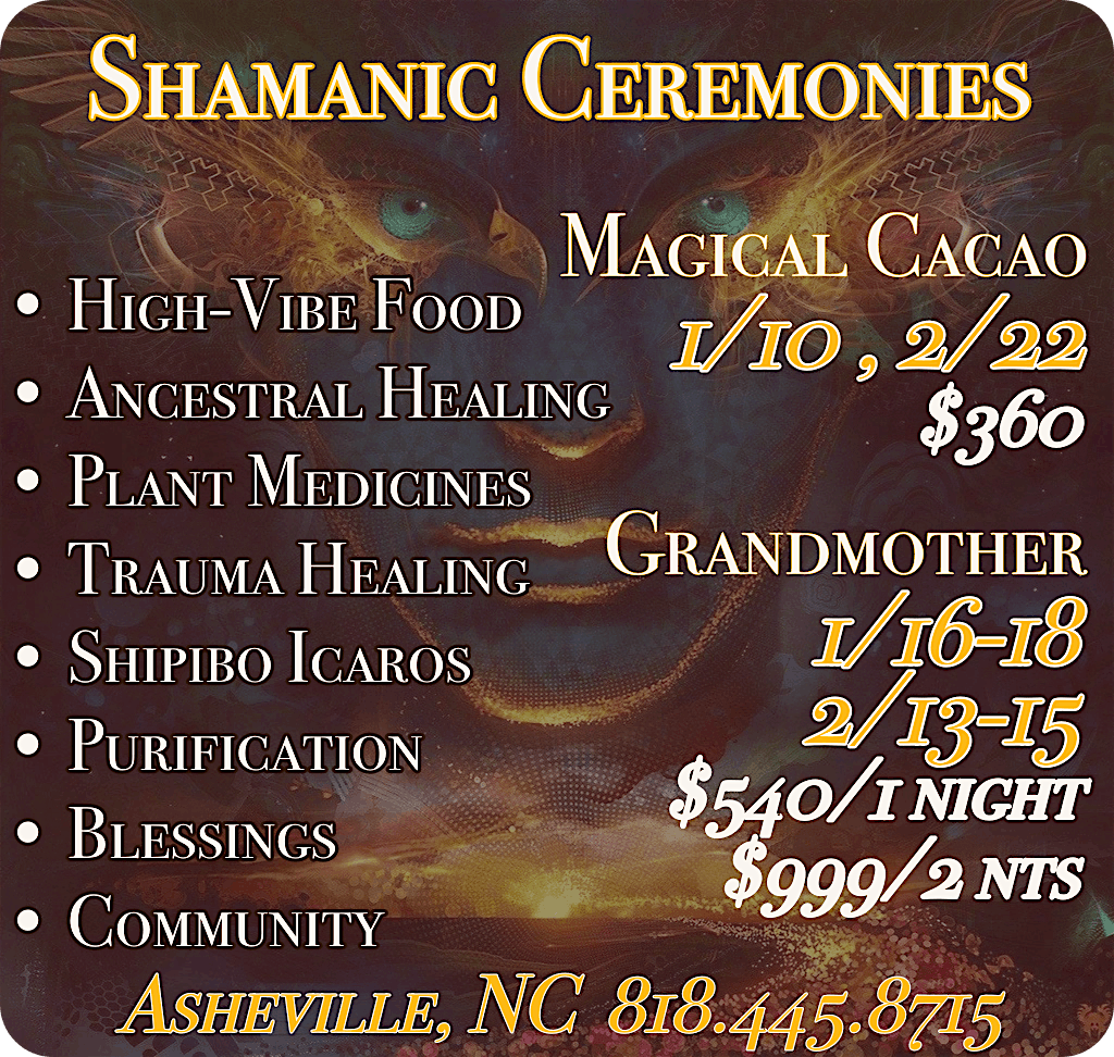 You are warmly invited to join us in Sacred Ceremony. We gather to commune deeply with the energies of the sacraments we will be working with and to open ourselves up to experience true healing, connection & transformation. These containers are honored in the Sacred ways of the indigenous peoples of the Amazon jungle with love, compassion & reverence.