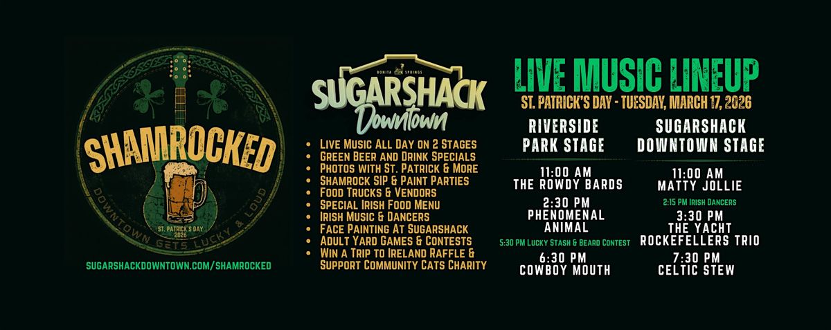 Celebrate St. Patrick's Day at Sugarshack Downtown & Riverside Park. 6 Bands - 2 Stages! Epic line up of activities. All AgesAbout this Event