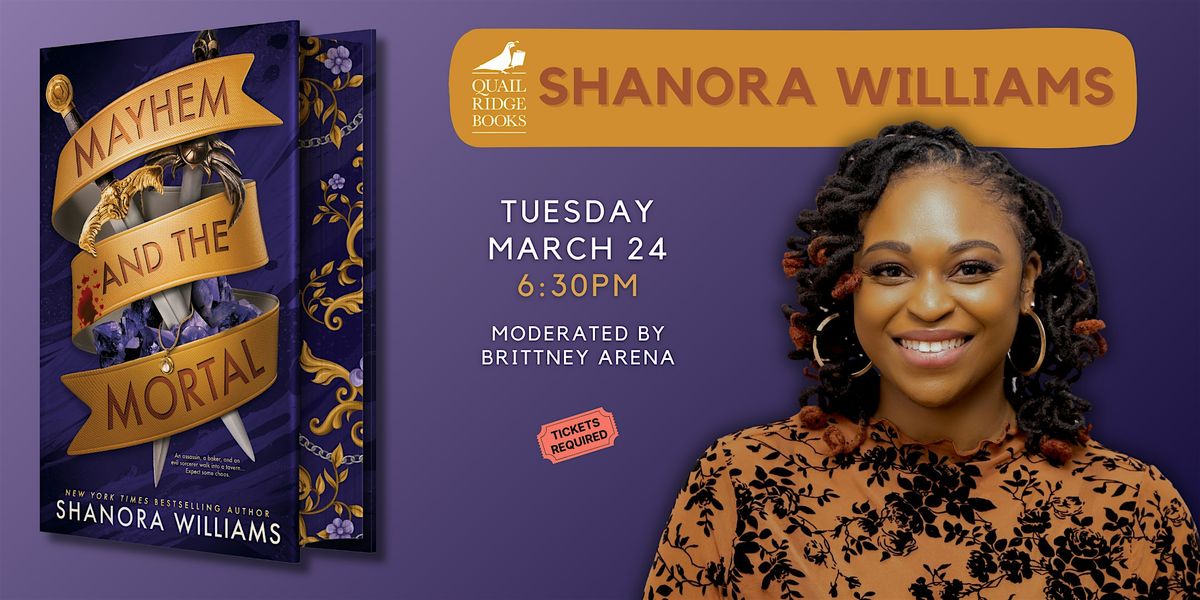 TICKETS REQUIRED. Tickets include a copy of Mayhem and the Mortal and guaranteed entry to the event. Shanora will be in conversation with Brittney Arena and will sign books after the program.