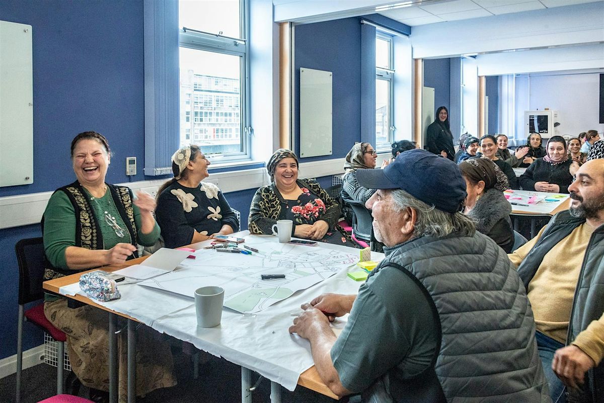 This workshop is part of the Roma PlaceAge project (2024–2027), a UK-wide participatory study exploring how place shapes health, wellbeing, and quality of life for Roma people in mid to later life. Working in partnership with Roma communities and voluntary and community sector organisations across Govanhill/Glasgow, Peterborough, and Luton, the project has been gathering stories, mapping experiences, and understanding what heath and wellbeing means for Roma communities - and the barriers and opportunities that shape positive outcomes.