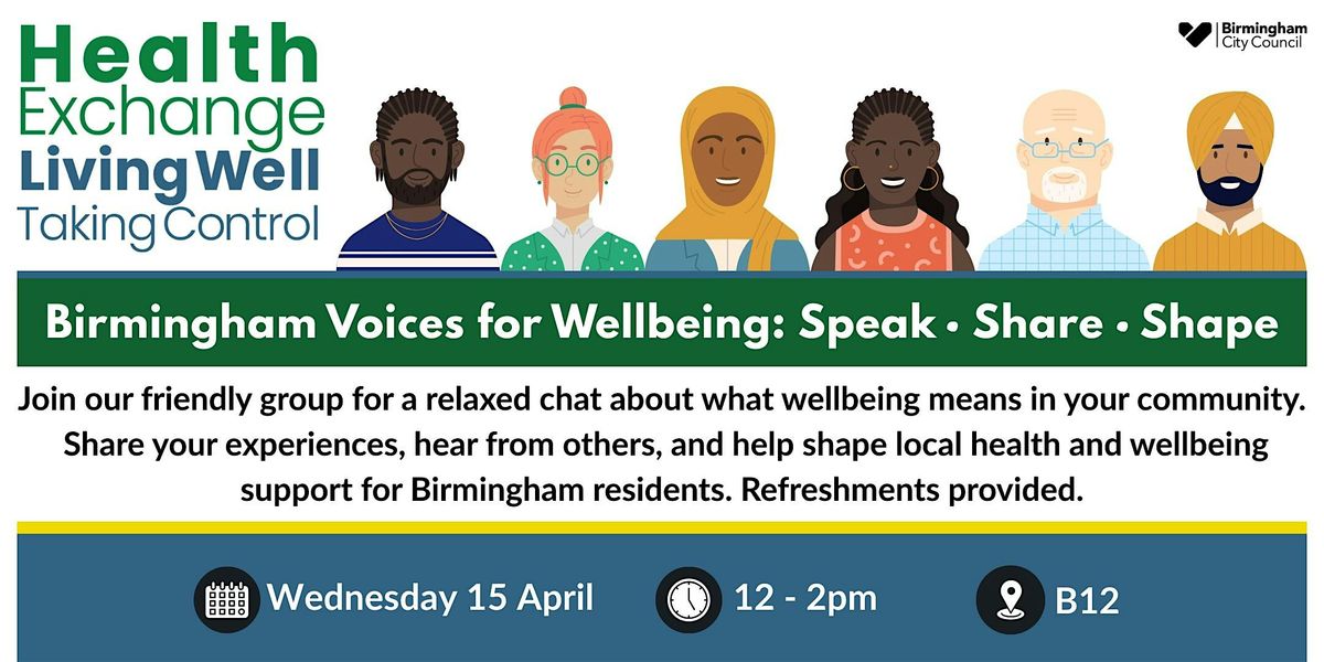 Come along, meet others from across the city, and help ensure Birmingham’s voices shape wellbeing.