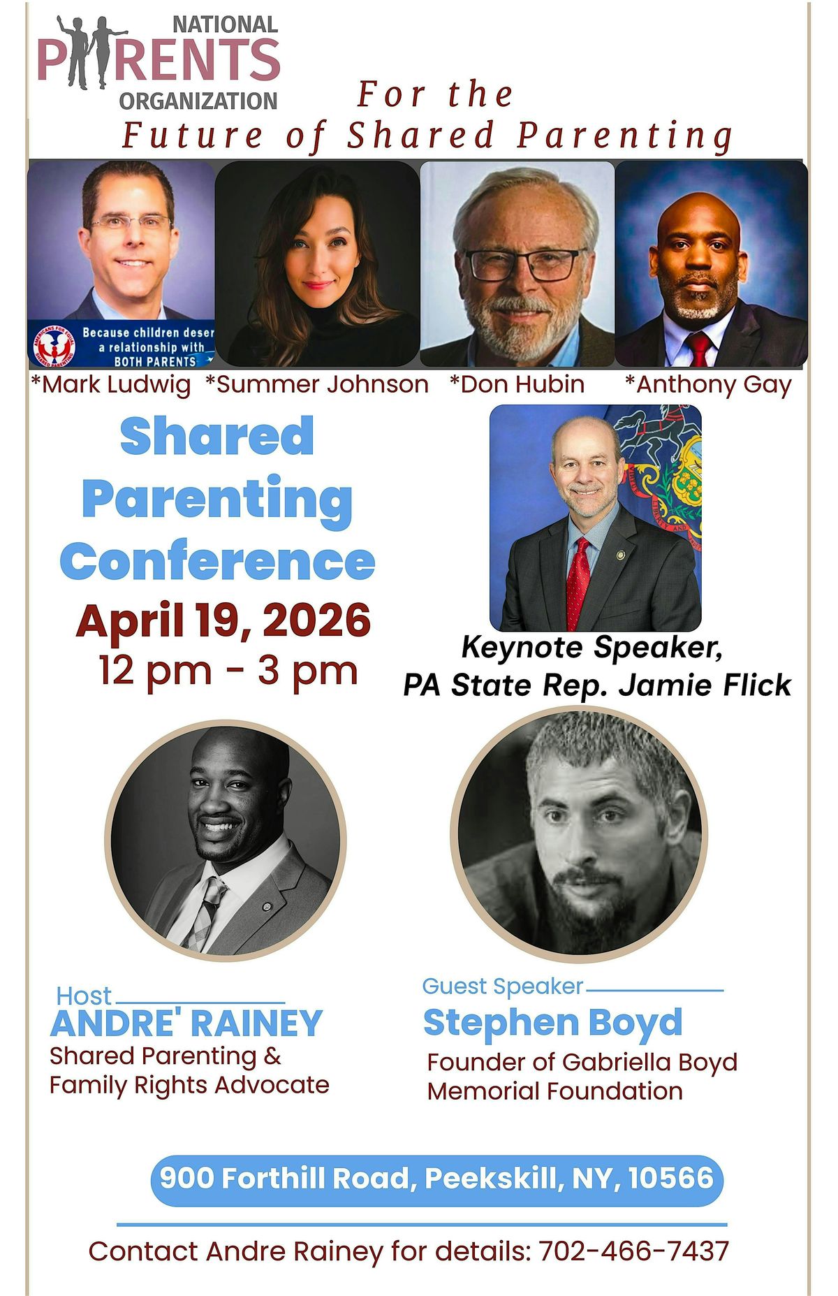 New York’s first Shared Parenting Conference in Peekskill on April 19, 2026, is a high-impact, solutions-focused gathering designed to transform how New York supports children and parents after separation or divorce. Hosted by former Peekskill Mayor André Rainey, Chair of the New York Chapter of the National Parents Organization, the event will feature four nationally recognized leaders in the shared parenting movement, bringing together families, mental health professionals, legal experts, advocates, and policymakers who believe every child deserves meaningful, ongoing relationships with both fit, loving parents. Through powerful keynote talks, real family stories, and clear legislative and policy action steps, the conference will spotlight the human cost of a system that too often sidelines one parent, and will mobilize attendees to advance equal shared parenting as a cornerstone of family law reform in New York.