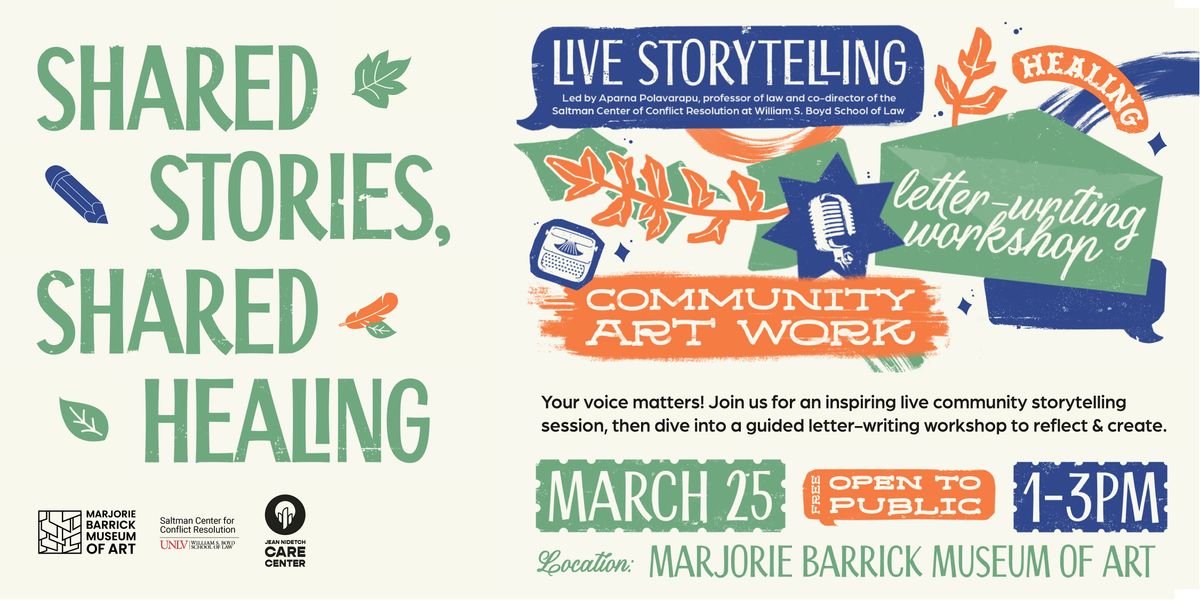 Join the Jean Nidetch Care Center, the Marjorie Barrick Museum of Art, and the Saltman Center for Conflict Resolution for Shared Stories, Shared Healing, an intimate afternoon exploring the transformative power of storytelling and writing.