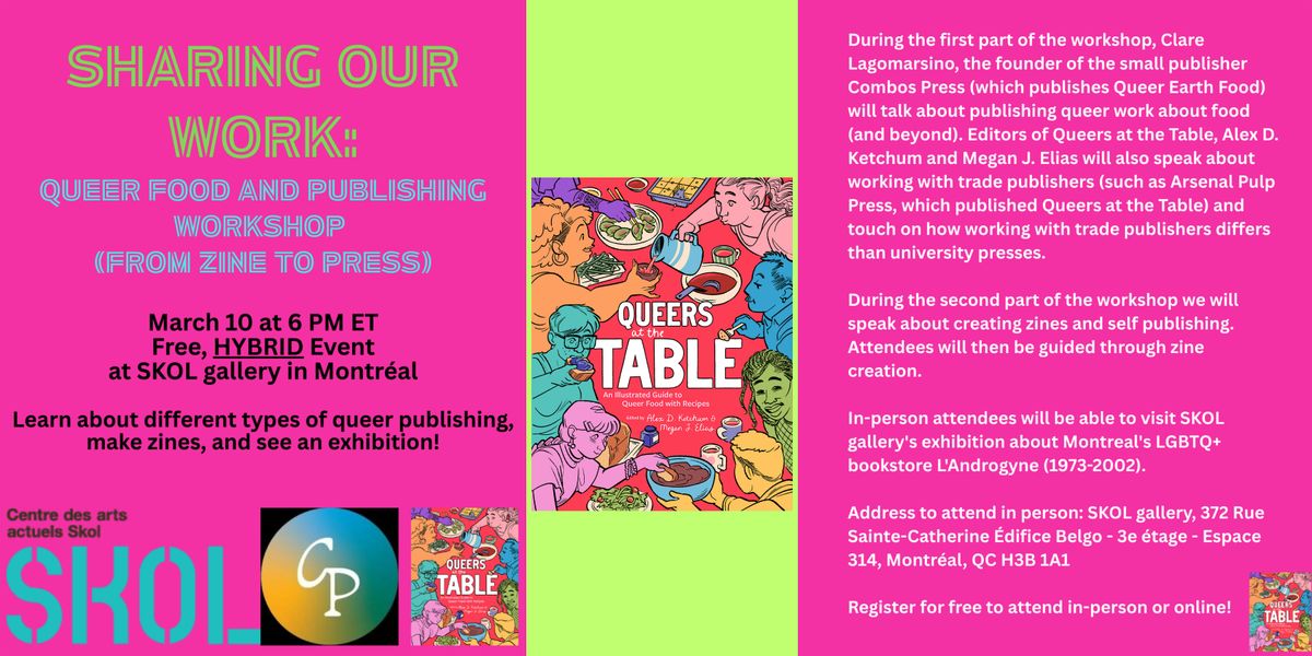 This event is part of a series of events celebrating the topic of queer food, the release of Queers at the Table, and the upcoming second Queer Food Conference (www.queerfoodconference.com) from May 1-3, 2026. To learn about more upcoming events, see: https://www.queerfoodconference.com/p/additional-events.html