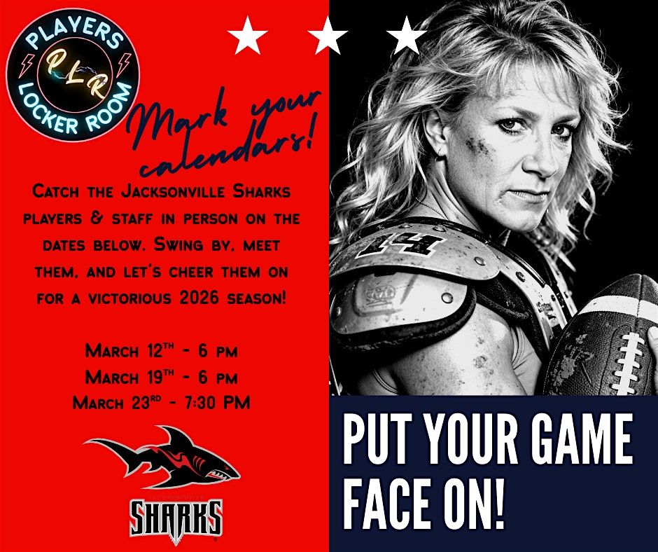As we approach the 2026 season, the Sharks will be @ Players Locker Room for dinner on a March 12th, 19th and 23rd. So come on in and let's show our support of these local football heros!
