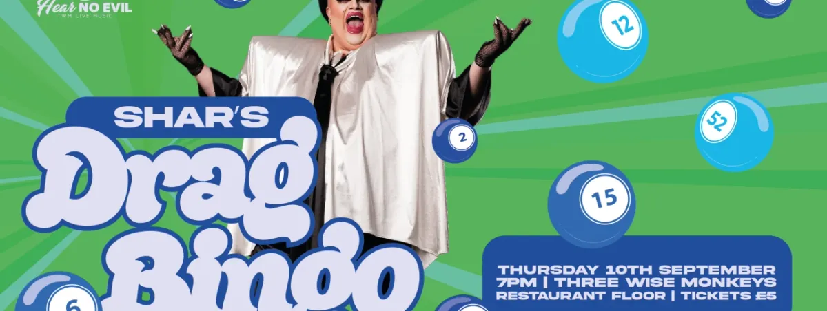 Shar invites you to Three Wise Monkeys Colchester, for an evening of songs, silliness and bingo.Tickets £5, Doors 7pm, Restaurant floorThis gig takes place on the restaurant floor of Three Wise Monkeys ColchesterAccess – There is no lift to access the restaurant floor of Three Wise Monkeys. There are two short flights of stairs to reach the top floor with rest opportunities between each flight.