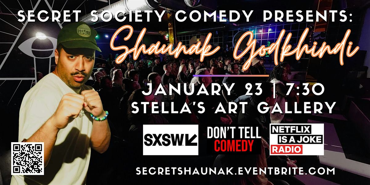 Secret Society Comedy is proud to present headliner Shaunak Godkhindi, one of those comics who just has it. We’ve built our reputation by booking comedians right before the rest of the world catches on — and if you’ve ever wanted to say “I saw them when,” this is your when.