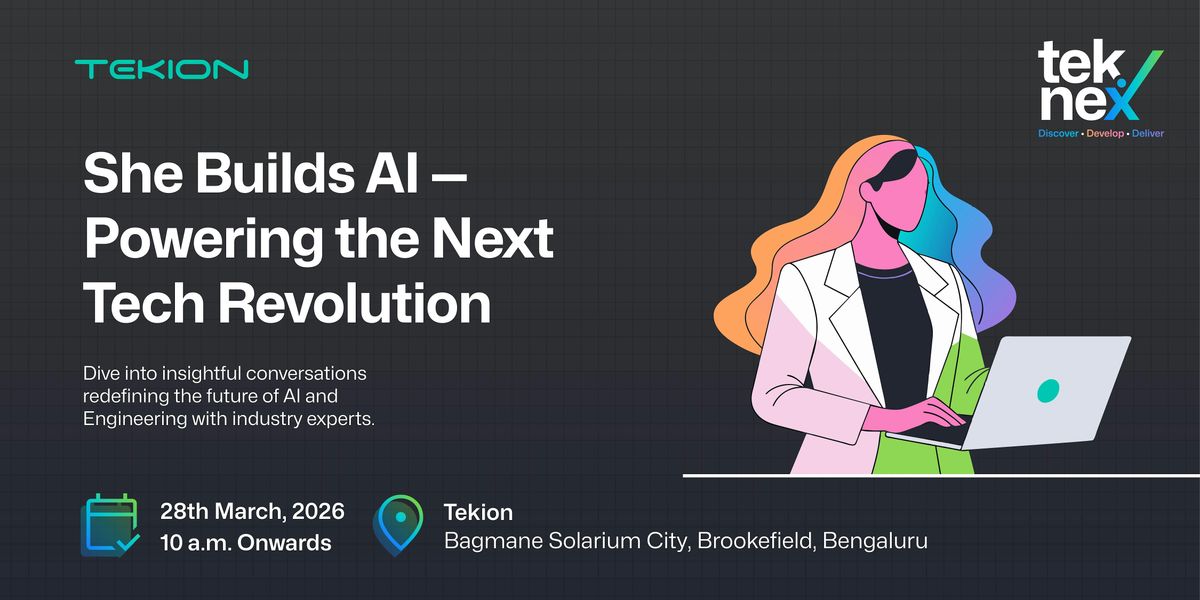 She Builds AI – Powering the Next Tech Revolution is a panel discussion hosted by Tekion, focused on innovators building and scaling AI-driven technologies. This session is exclusively for women students across all campuses and offers insights into real-world applications of AI and emerging technology trends through discussions with industry leaders. Women students in and around Bangalore are encouraged to attend the event in person at our Bangalore office.