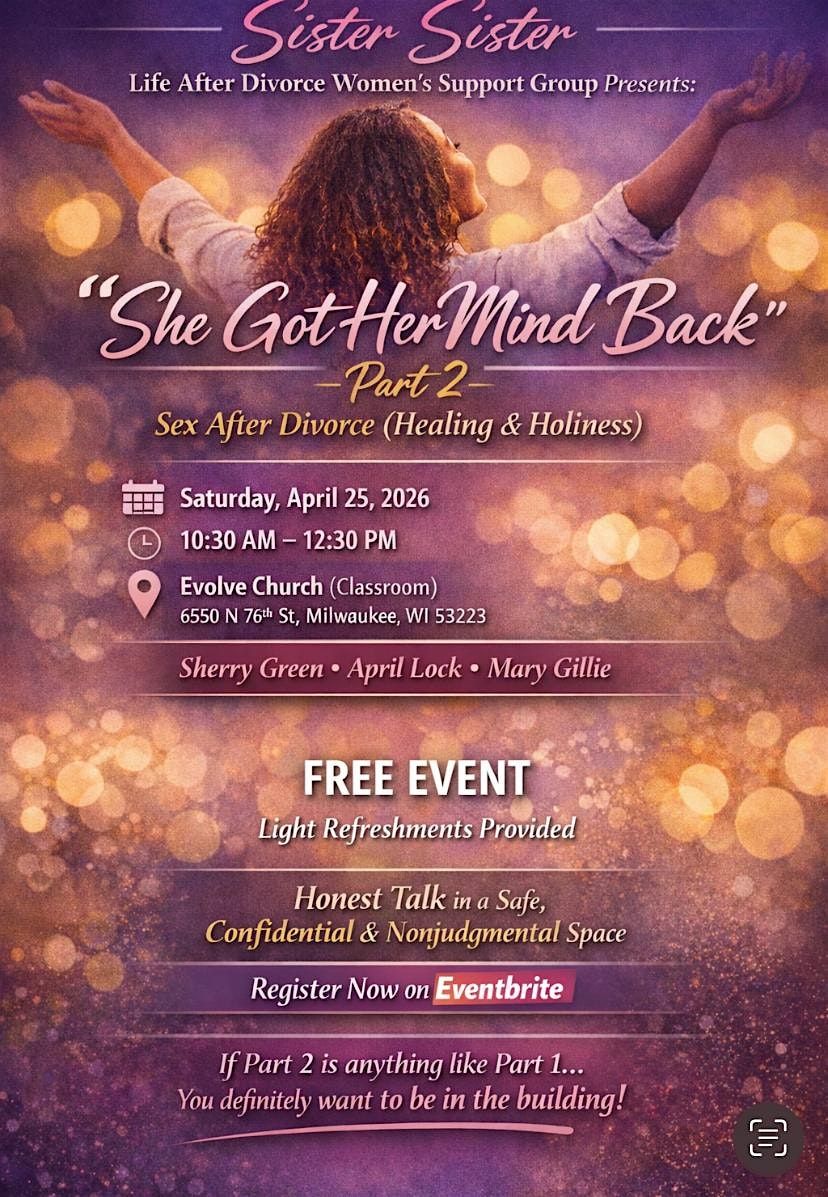As part 2 of our Sex After Divorce: Healing and Holiness series, we will have honest and faith-centered conversations about intimacy, self-worth, and making choices that align with both healing and holiness. This session provides a safe space for women to reflect, grow, and move forward with wisdom and confidence. In a confidential, safe space.