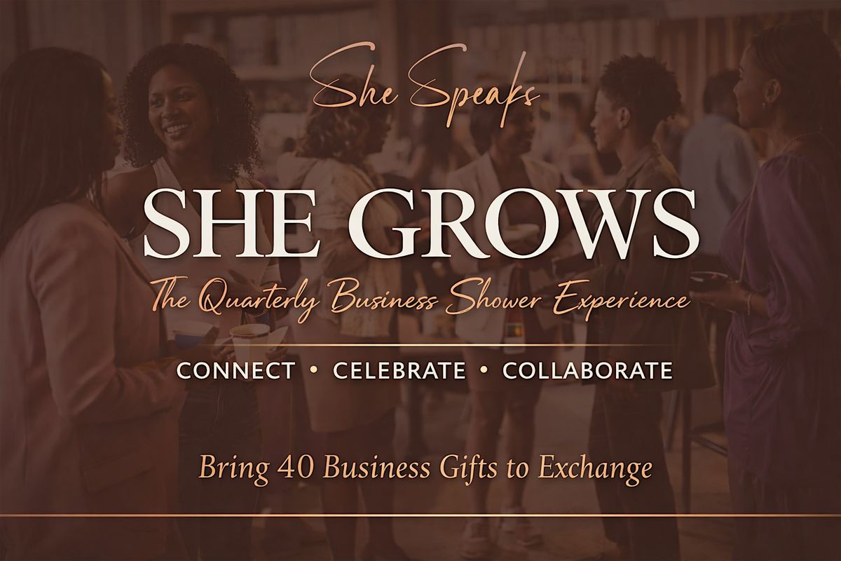 She Grows: The Quarterly Business Shower Experience is a curated gathering for women entrepreneurs who are ready to be supported, seen, and strategically connected.
