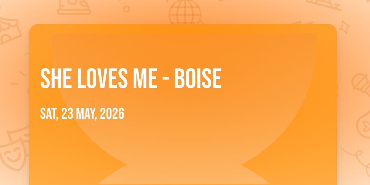 📍 Location: 43.6147, -116.191🎉 Welcome to She Loves Me - Boise, where dreams come alive and possibilities are endless! 🏛️ Join us at Boise Little Theater in the heart of Boise, ID for an event that defies expectations. 📅 On May 24th, 2026 at 08:00 PM, be part of something truly extraordinary as we bring together innovation, entertainment, and pure magic. ✨ Every aspect has been carefully designed to ensure an unforgettable experience for all our guests. Whether you're seeking adventure, inspiration, or simply a break from the ordinary, this event promises to deliver beyond your wildest dreams. 🎊 Prepare for a journey into the extraordinary!