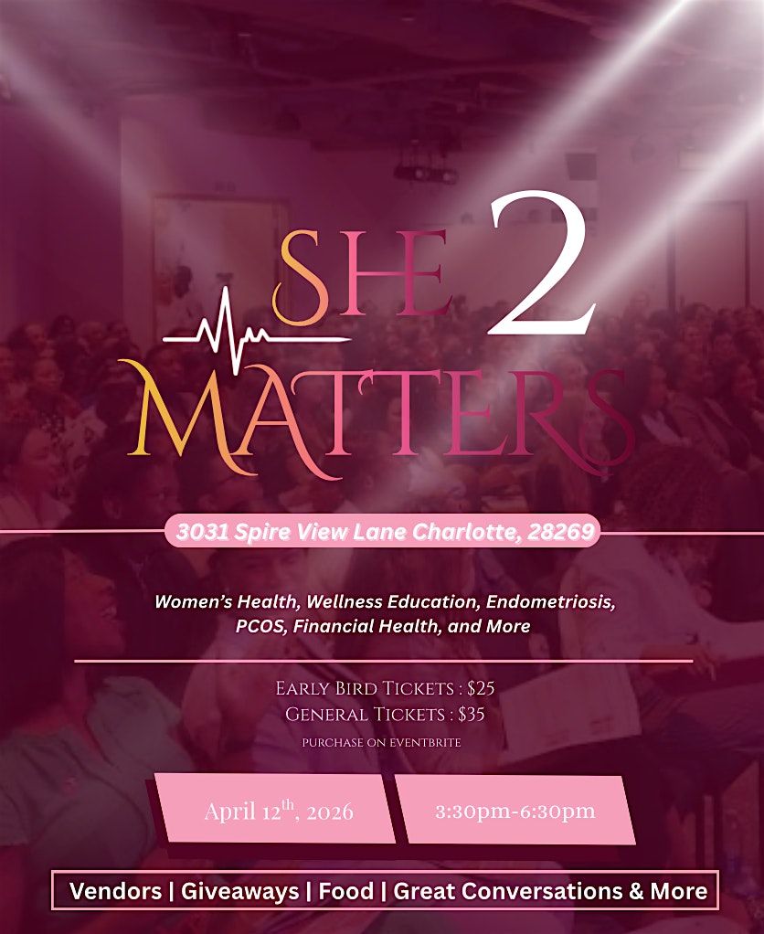 Welcome to SHE MATTERS 2 ! Join us at Spire View Lane on April 12, 2026 at 3:30 PM for an empowering women's health event. This powerful movement is one not to miss. This space is designed to educate, empower, and support every women of their health journey.