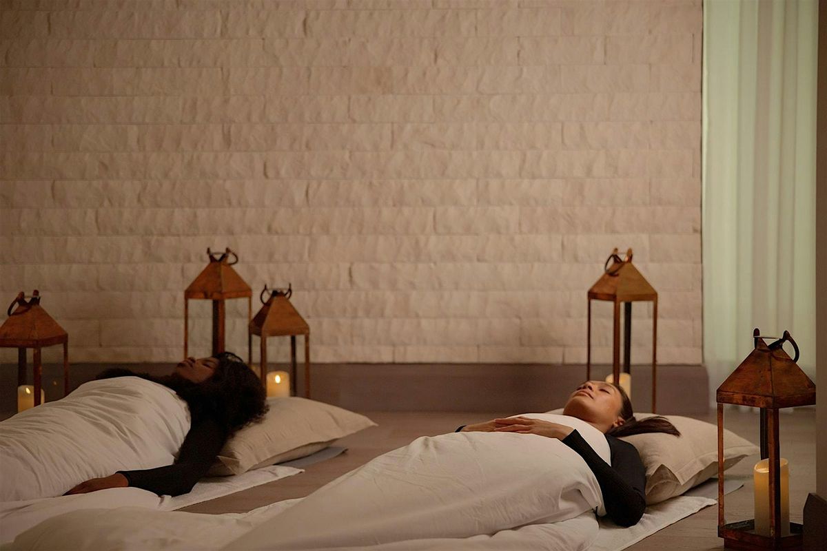 Guests will be invited to lie down or sit comfortably on yoga mats, surrounded by cushions and soft towels, creating a cocoon-like environment for deep relaxation. Eye coverings will be available to enhance the immersive experience.