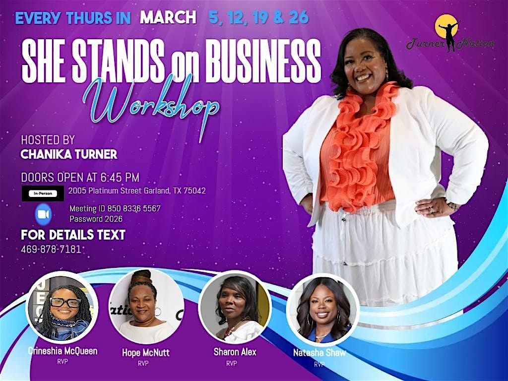 Welcome to She STANDS on Business: Money Strategies for Women! Join us on Thursdays, March 5, 12, & 19, 2026 at 7:00 PM for an empowering event tailored specifically for women looking to take control of their finances. Located at 2005 Platinum St, this in-person event will feature expert speakers and interactive workshops to help you build your financial confidence and independence. Don't miss this opportunity to connect with like-minded women and learn valuable money strategies to secure your future. See you there!