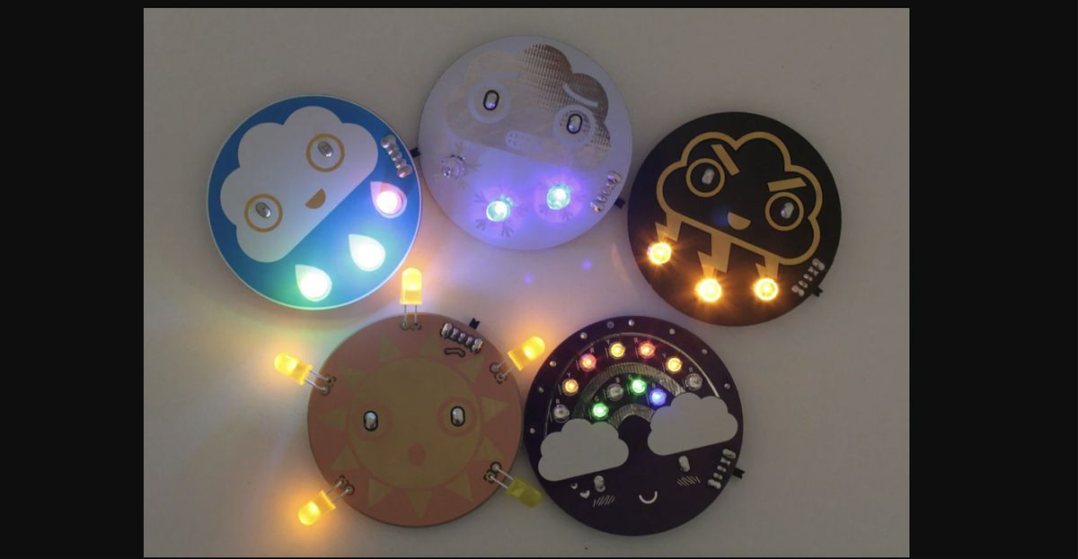 In this hands-on workshop, we'll make one of the little weather LED pins shown in the picture!