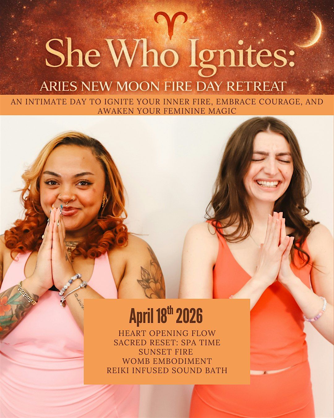 Step into a powerful portal of courage, renewal, and embodied truth. This immersive retreat day is intentionally designed to guide you through activation, expansion, release, and deep integration — aligned with the bold, initiating energy of the Aries New Moon.