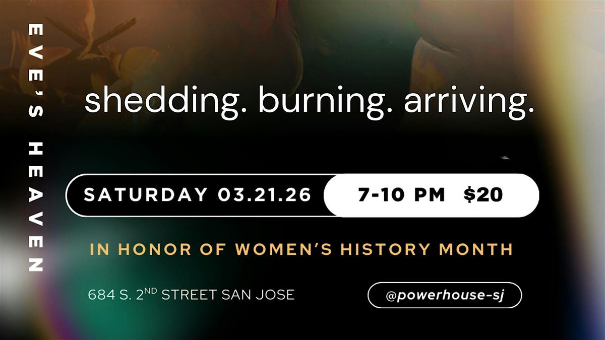 PowerHouse San Jose presents shedding. burning. arriving: a collective and cohesive story told through music, poetry and dance. The show is curated and performed by Esther Young and her band Eve's Heaven. With a special nod to Women's History Month, guest artists include bassist Sam Munoz-Kelly, poet Kim Johnson, spoken word performer Kristina Robertson, playwright and zine-maker Marissa Martinez, and dancer Paulina Huynh Nhu.