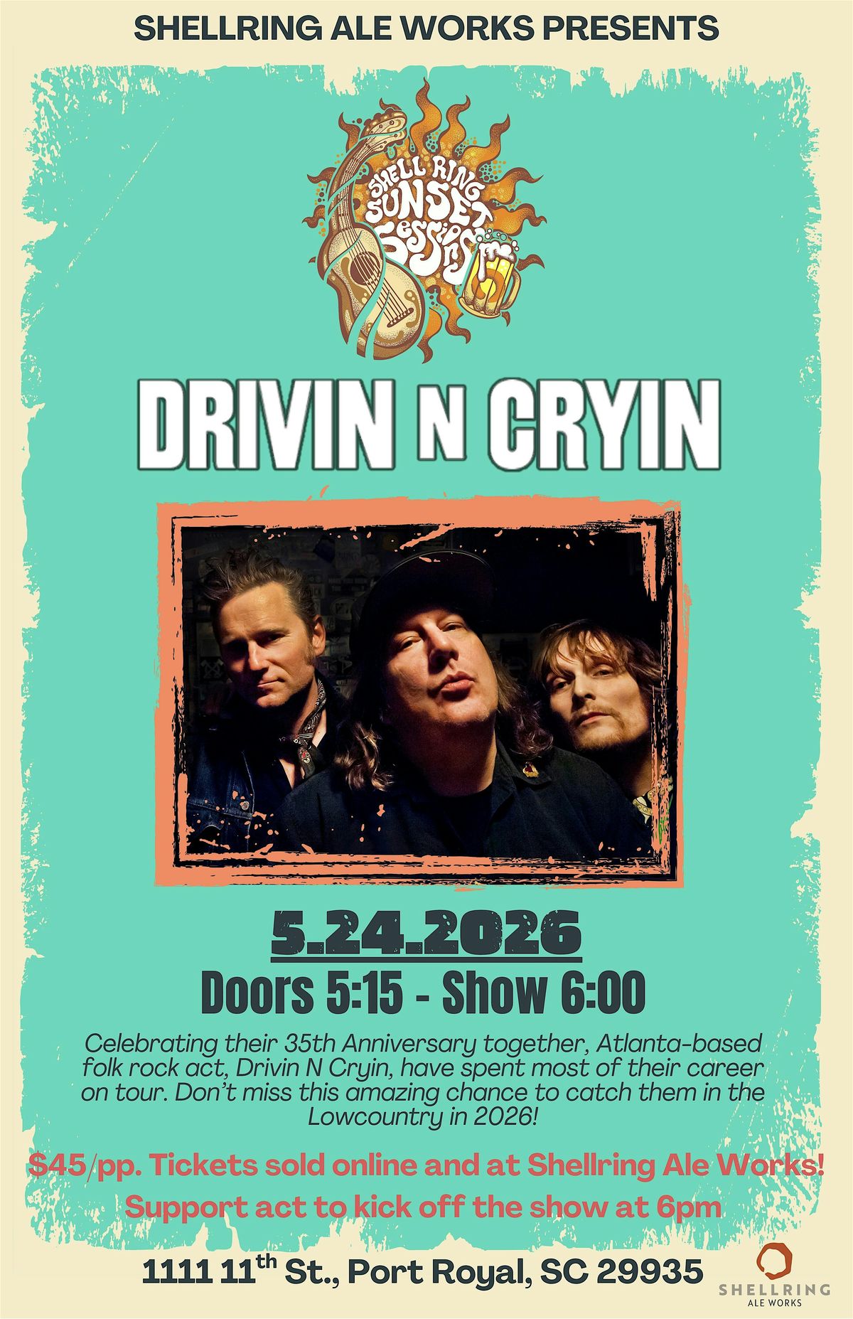 Get ready to rock out with Drivin -N- Cryin at Shellring Ale Works for a night full of good vibes and great tunes.