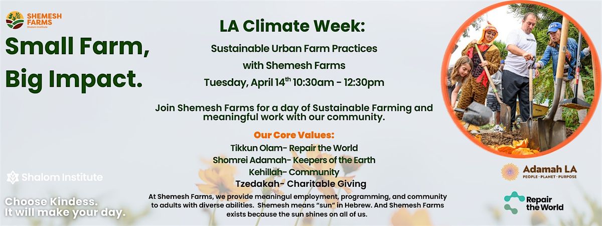 Shemesh Farms, a social enterprise that employs adults with diverse abilities invites you to join them on, Tuesday April 14th from 10:30-12:30 to work all aspects of our herb farm and inclusive program. We will harvest, sort and process herbs, compost food waste, learn about hydroponics and plant marigolds in garden beds to help our herbs and vegetables grow. Volunteers will work side by side with adults with diverse abilities- known as our farm fellows, and experience how nature and farming can offer therapeutic experiences while practicing sustainable farm methods.