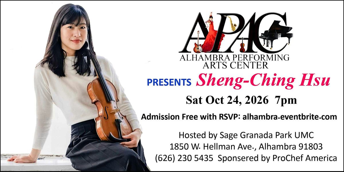 Join us for an inspiring evening of classical music as APAC Presents: Sheng-Ching Hsu in concert on Saturday, October 24, 2026. This special performance features an expressive program highlighting the beauty, nuance, and emotional depth of the violin repertoire.
