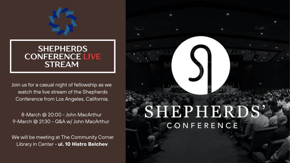 Join us for a time of fellowship as we watch the Shepherds Conference Live Stream. For information on this years Shepherds Conference theme visit: https://vimeo.com/748128921We will be meeting at The Community Corner Library in Center @ - ul. 10 Histro Belchev.