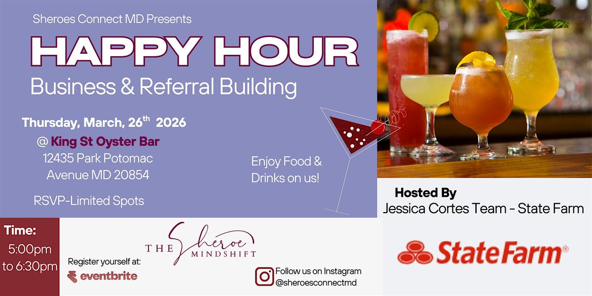 Youโre invited to connect, unwind, and build meaningful relationships at our March Happy Hour Networking Event hosted by Sheroes Connect MD.
